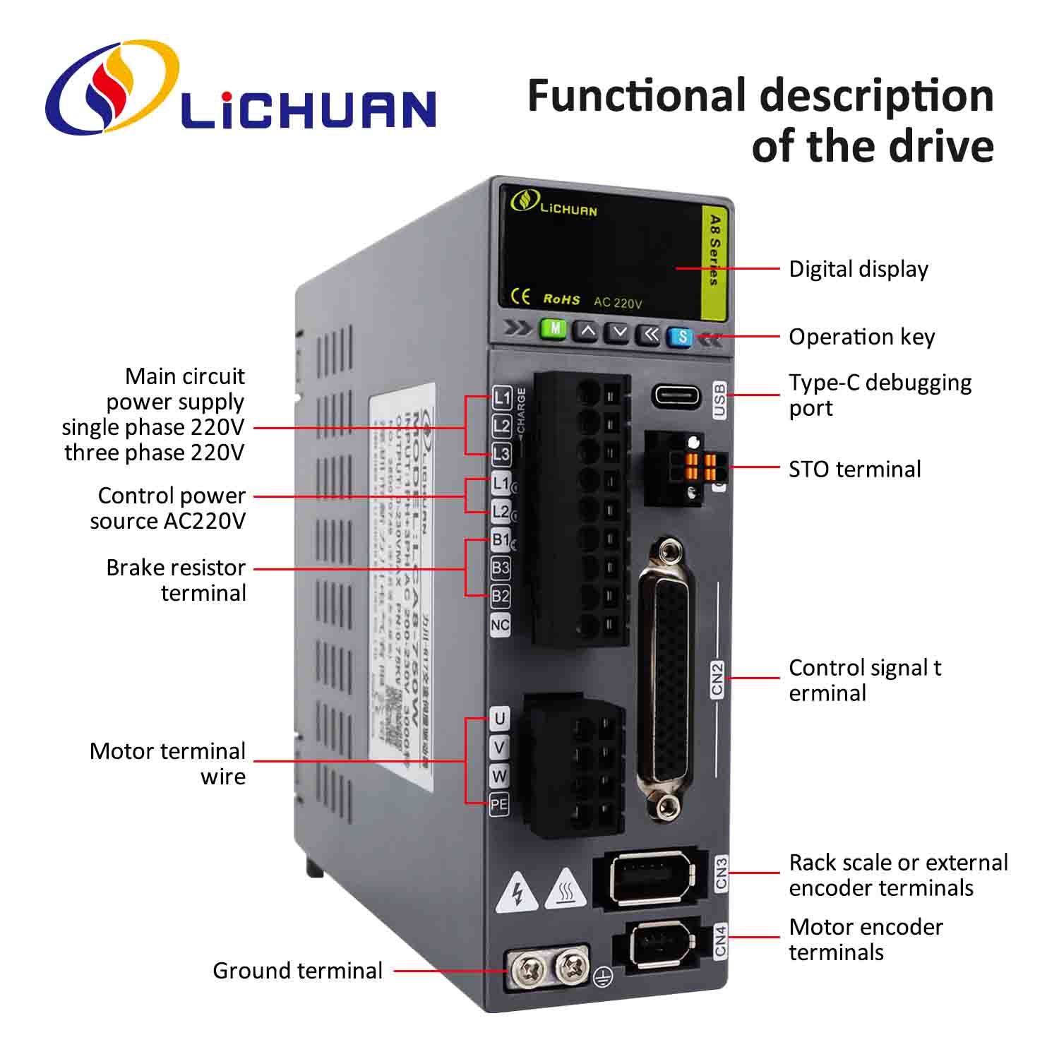 दLichuan A8 उच्च अचूकता STO ABZ AC सर्वो मोटर ड्रायव्हर्स किटउच्च-संवेदनशीलता ABZ एन्कोडर मोटरसह एकत्रित डिजिटल-सिग्नल-प्रोसेसर (DSP)-आधारित AC सर्वो ड्रायव्हर वापरते.