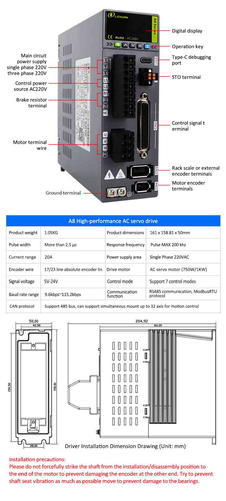 Lichuan A8 उच्च अचूकता STO ABZ AC सर्वो मोटर ड्रायव्हर्स किट — उत्पादन विहंगावलोकन