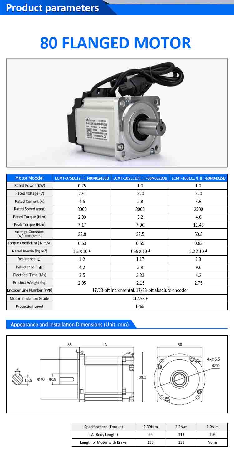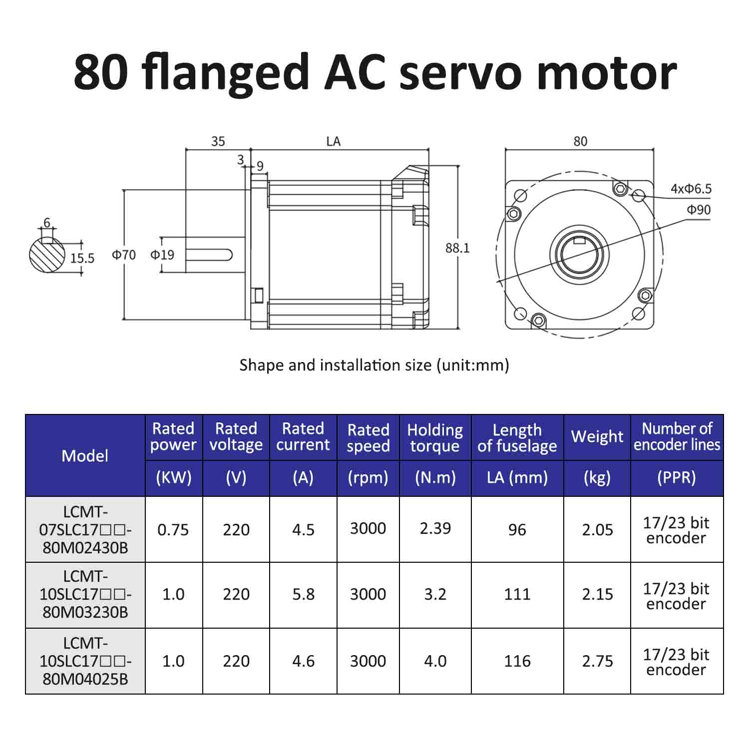 | मोटर मॉडेल | LCMT-07SLC17-80M02430B | LCMT-10SLC17-80M03230B | LCMT-10SLC17-80M04025B |