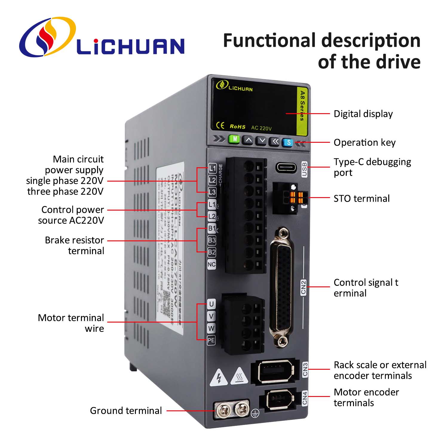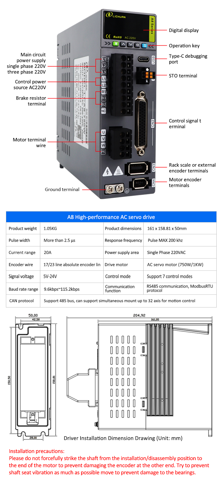 पल्स/RS485 750W/1000W/1001W 2500/3000RPM A8 उच्च अचूकता STO ABZ AC सर्वो मोटर ड्रायव्हर्स किट