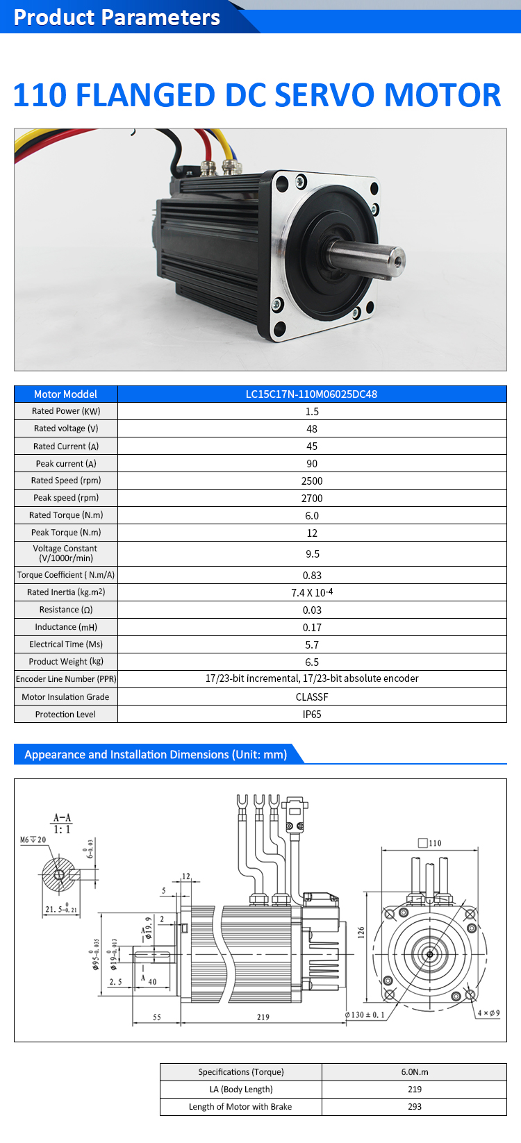 पल्स/RS485/CANopen/EtherCAT 60 FLANGED 400W लो व्होल्टेज DC सर्वो मोटर ड्रायव्हर्स किट