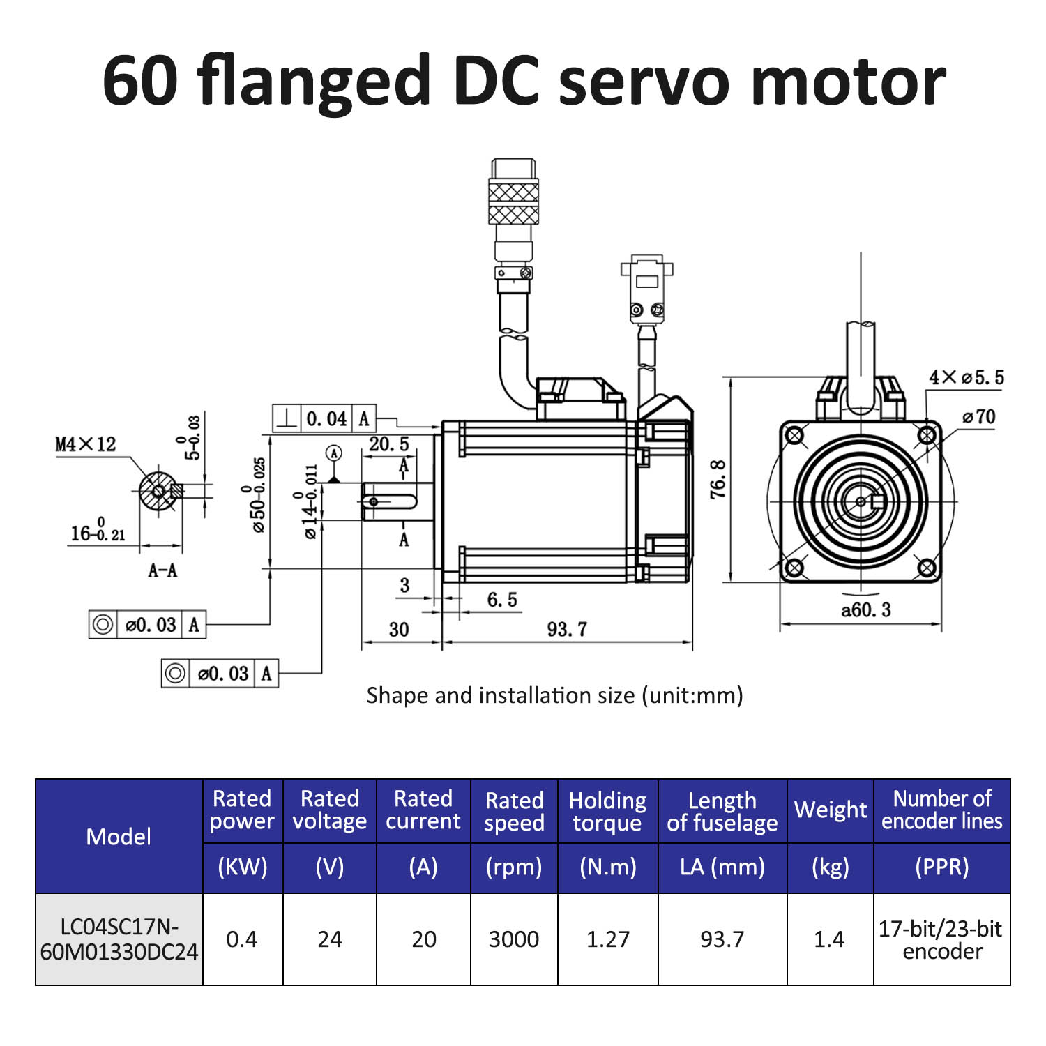 पल्स/RS485/CANopen/EtherCAT 60 FLANGED 200W/400W/600W लो व्होल्टेज DC सर्वो मोटर ड्रायव्हर्स किट