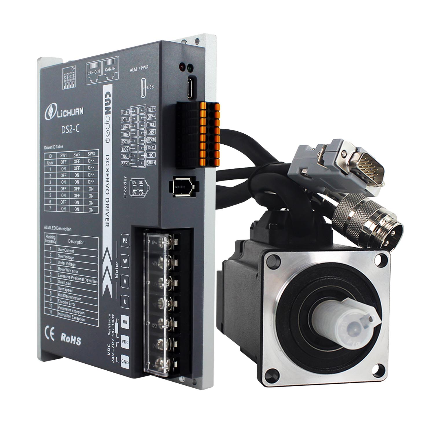 पल्स/RS485/CANopen/EtherCAT 40 FLANGED 100W लो व्होल्टेज DC सर्वो मोटर ड्रायव्हर्स किट