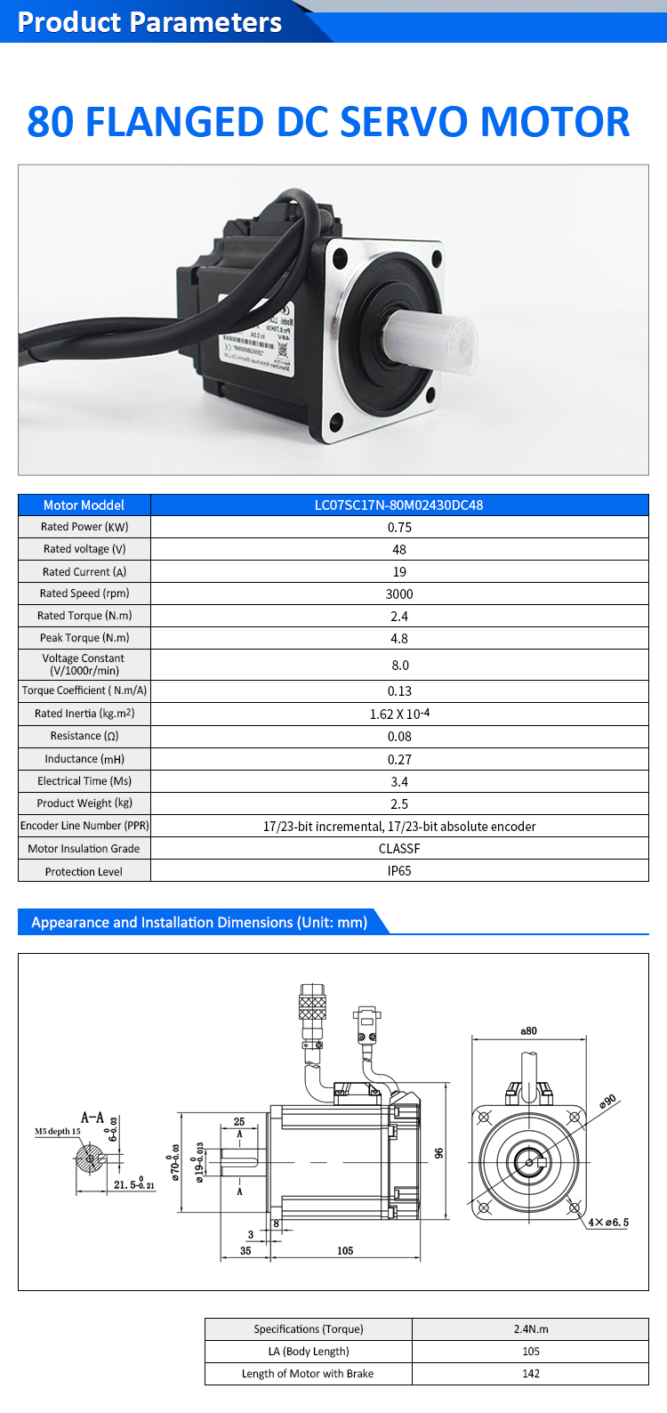 पल्स/RS485/CANopen/EtherCAT 60 FLANGED 400W लो व्होल्टेज DC सर्वो मोटर ड्रायव्हर्स किट